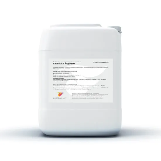 «Компомол Йодофом» ухаживающая моющая жидкость на основе оптимизированной высокопенной смеси ПАВ, комплекса поливинилпирролидон с йодом и эмолентами, обеспечивающими нежный уход за кожей вымени у коров.